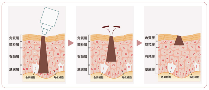 低周波を使い、シミ部分のターンオーバーを促して、少しずつ少しずつ、シミをはがしていくイメージです。